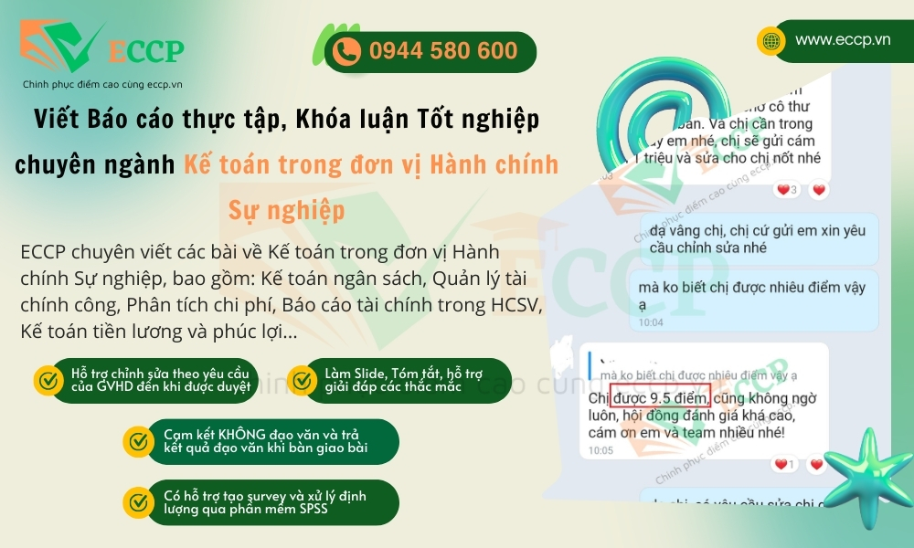 Bạn đang tìm kiếm dịch vụ viết luận văn, báo cáo chuyên nghiệp trong lĩnh vực Kế toán tại đơn vị Hành chính Sự nghiệp? ECCP tự hào là địa chỉ uy tín, cung cấp các dịch vụ viết bài chuyên sâu và hỗ trợ toàn diện cho sinh viên ngành Kế toán. Chúng tôi cam kết mang đến cho bạn bài luận văn chất lượng, phù hợp với yêu cầu của giáo viên hướng dẫn và chuẩn mực chuyên ngành.